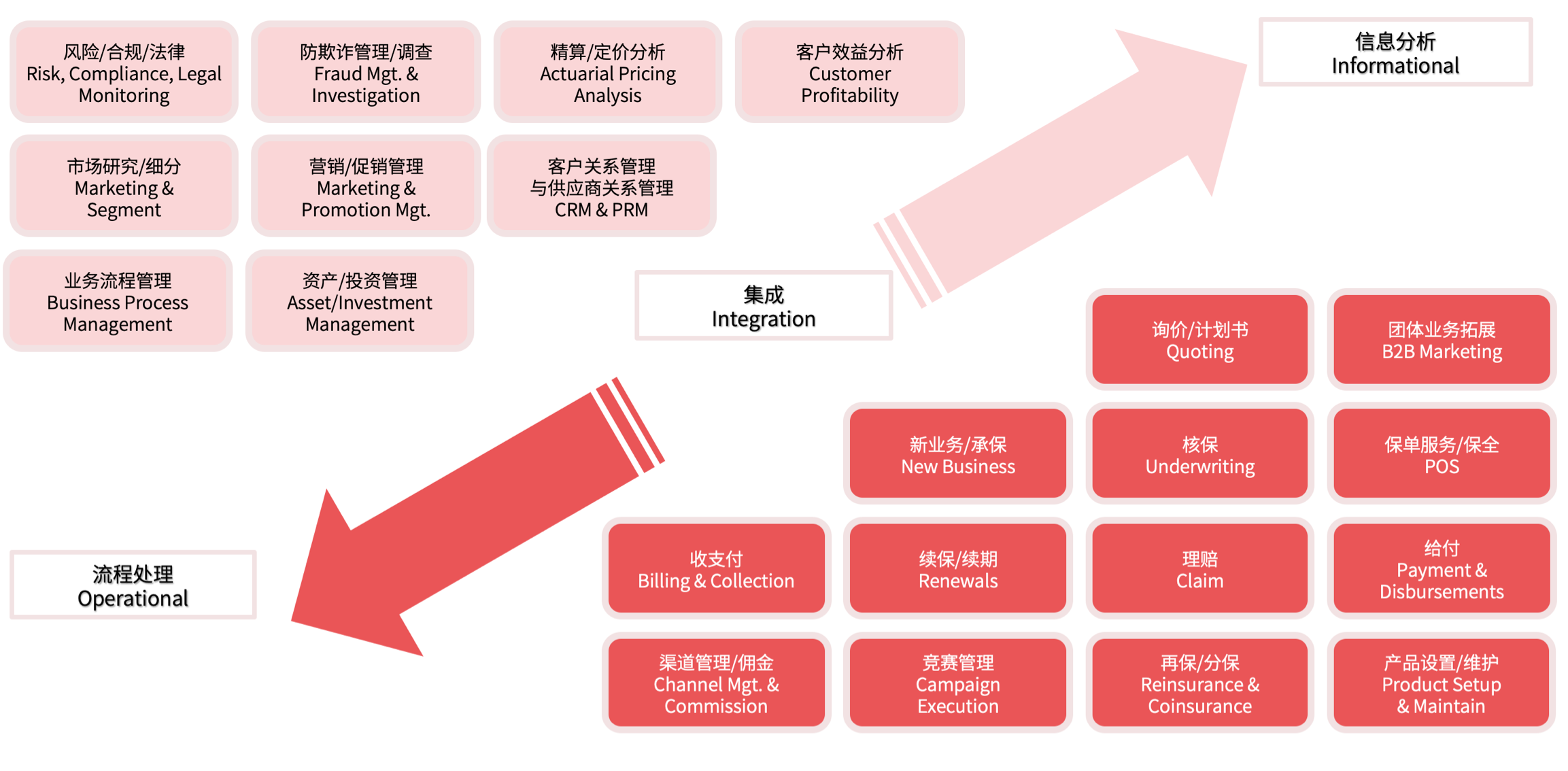 基于IAA/ACORD保险应用架构体系,涵盖产品/流程/规则/交易等引擎,支持保险产品与保单全生命周期管理,满足客户为中心与快速上线等要求。